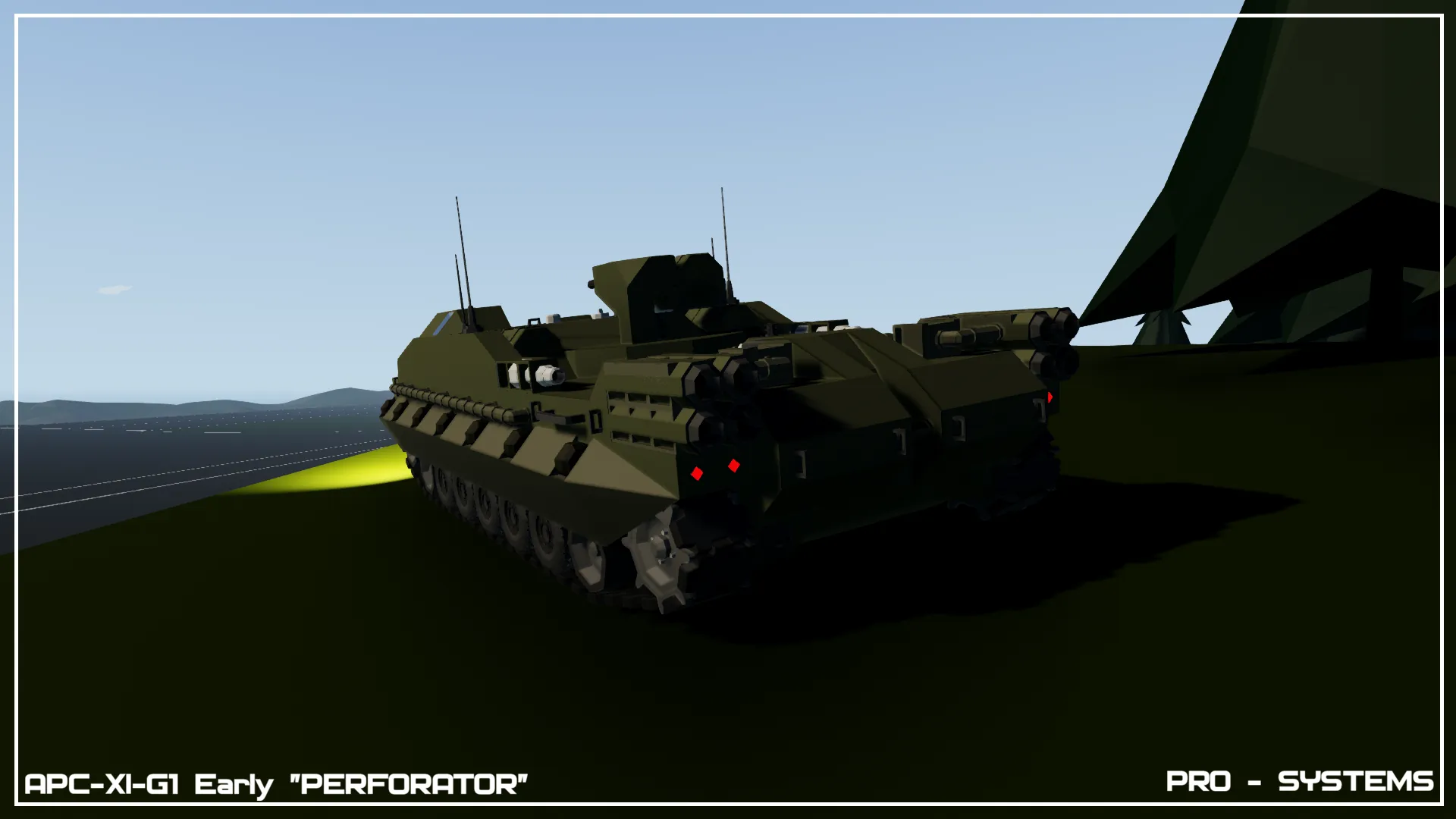 [b]PRO-SYSTEMS, Prokiller, APC, Personal Carrier, Troop Transport, Armored, Light Autocannon, High Firerate, Rocket Boosters, Ramming, Fast[/b]