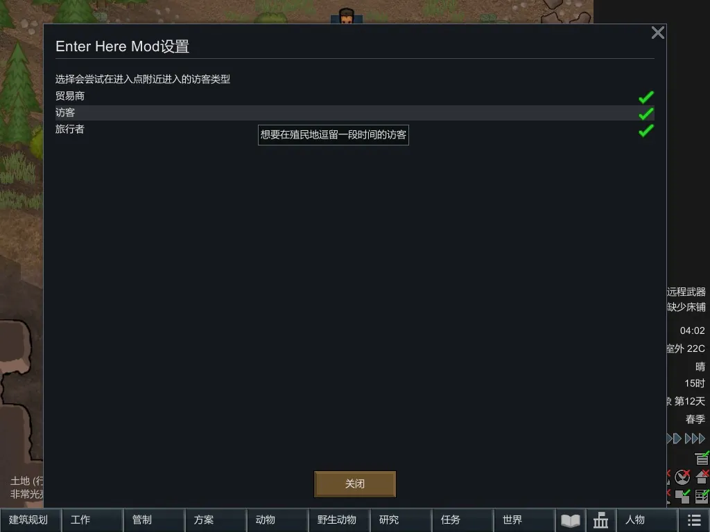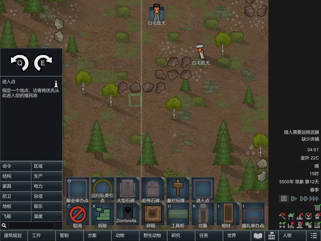 请在“建筑规划”——“杂项”中找到“进入点”,并在地图边缘建造。