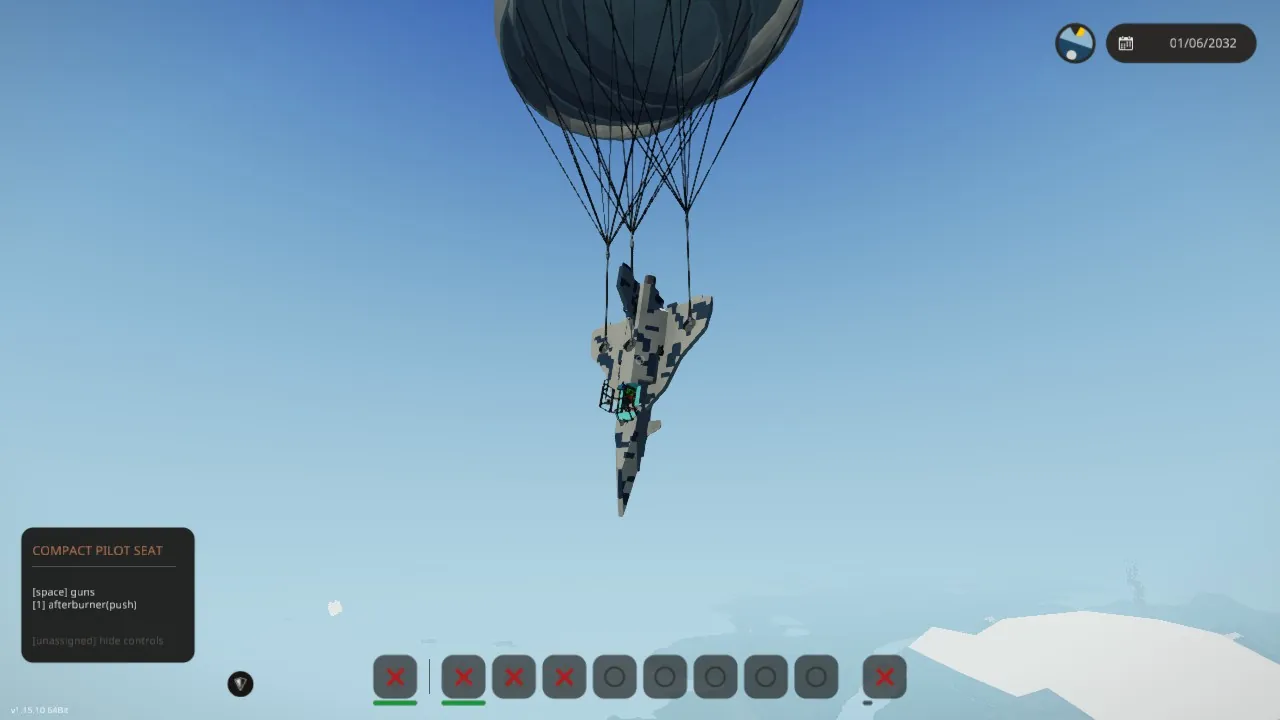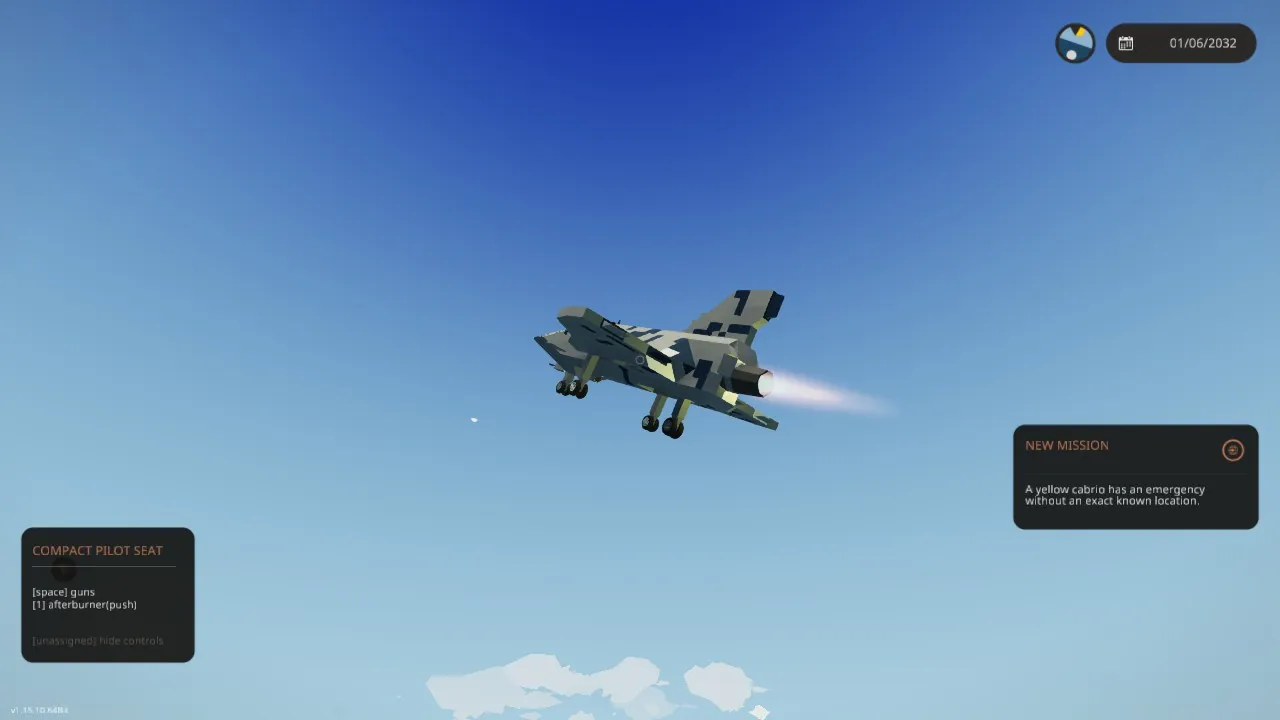 UPDATE: doubled the range by adding an extra fuel tank giving it 45km of range at full throttle + afterburner also added an ejection seat or kinda - added parachutes to the aircraft so that way you have time to eject also added a self-destruct feature to avoid capture