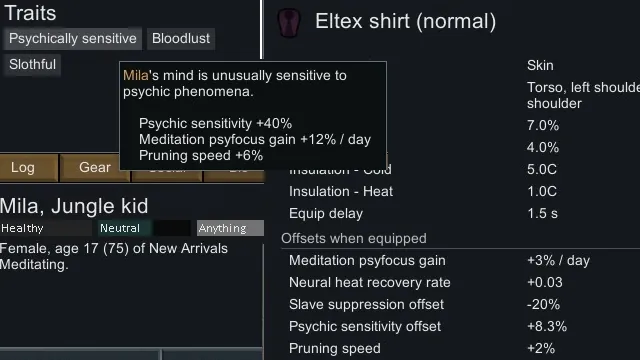 The Psychic Sensitivity and Eltex gear become slightly more useful, by affecting the Meditation and Pruning Speed of the Gauranlen tree.