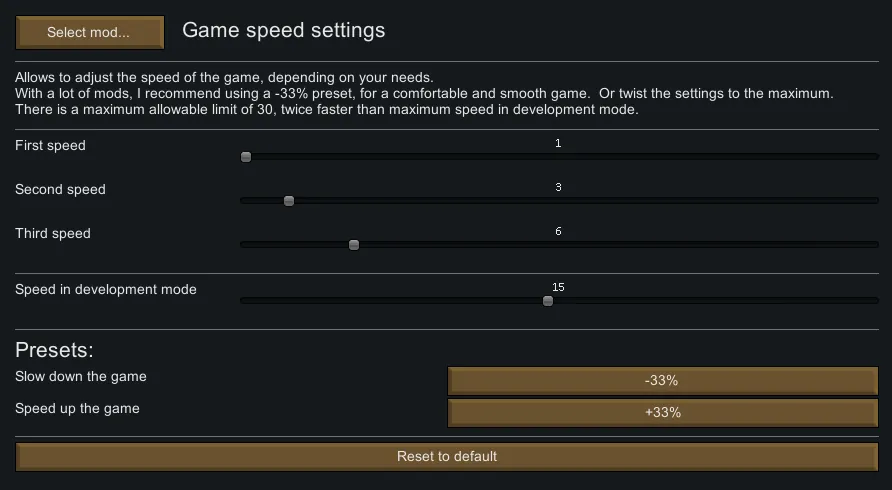 Allows to adjust the speed of the game.
