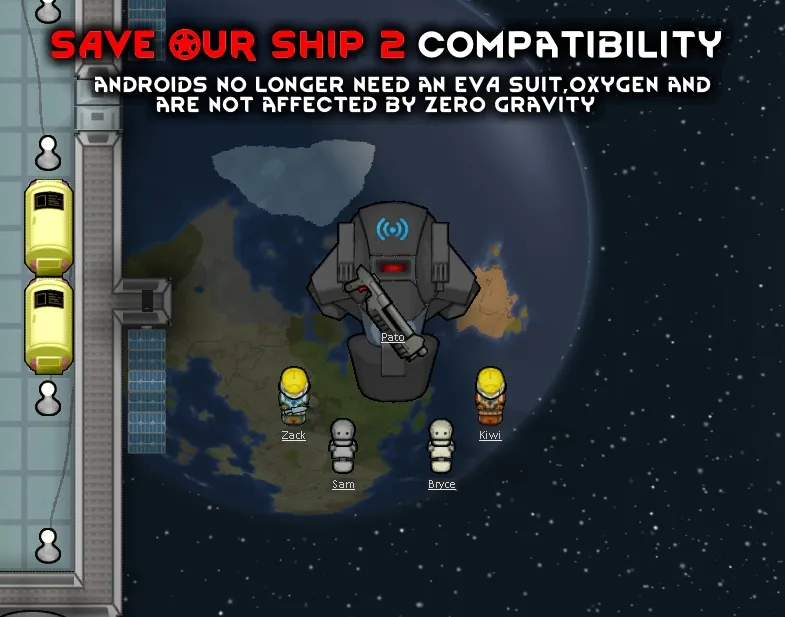 [*] Use this mod with SoS2 to have colonists on a spaceship do remote work planet side throught surrogate androids