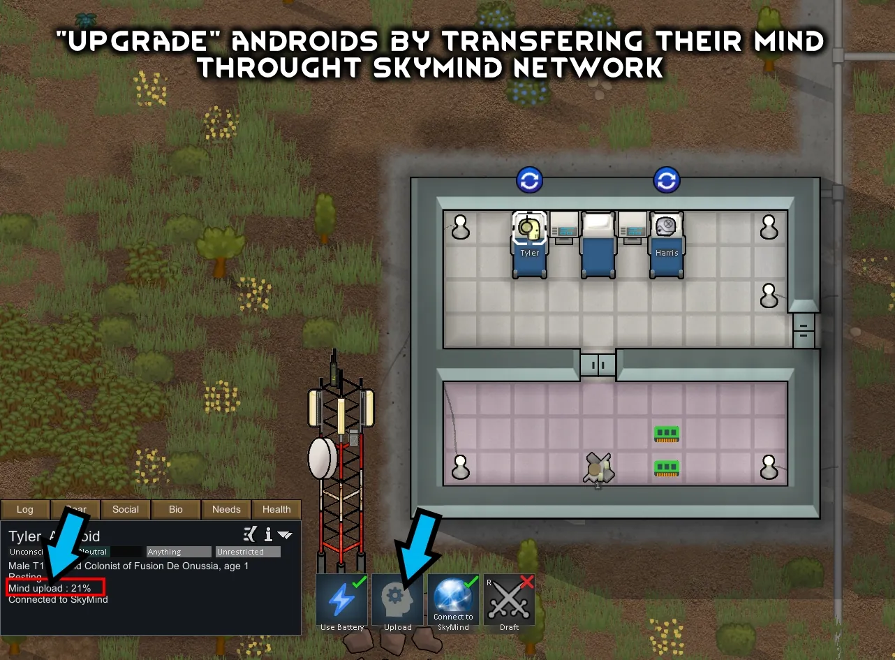 [*] Allow to "upgrade" androids with the ability to upload their mind throught a wireless network