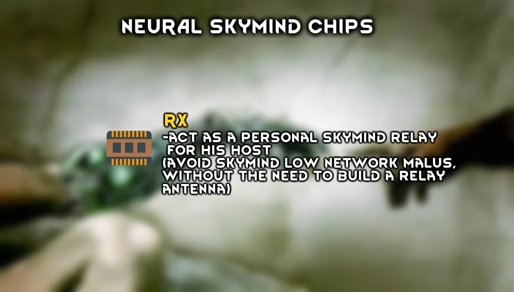 [*] Permute/duplicate colonists full consciousness (humanoids and androids) wirelessly throught a SkyMind network thanks to the VX1/VX2/VX3 neural chips