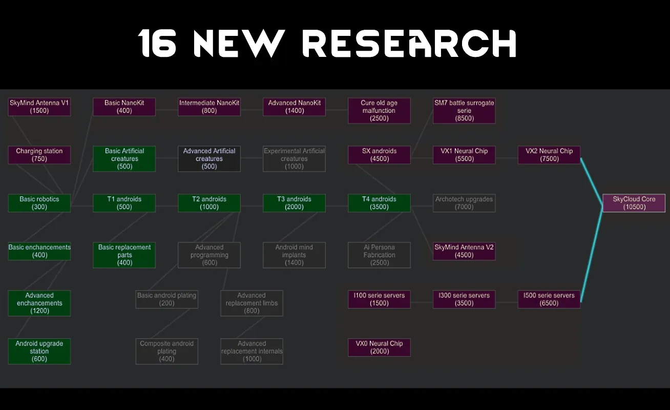 [*] Get ride of all your weak meatbags colonists, by digitize them to androids throught SkyMind network and VX2 neural chips