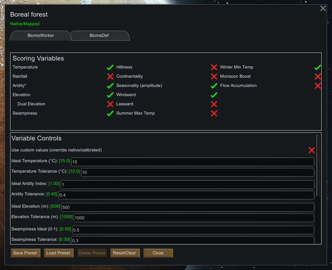 - Biome Editor [BETA]: edit a biome's scoring behavior and key biome-def values, then save/load per-biome presets for testing and custom setups.
