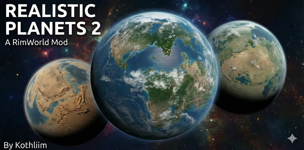 Realistic Planets 2 is a full overhaul of RimWorld's world generation process. It keeps the base continent shape, then rebuilds terrain, climate, and biome placement so planets feel believable, diverse, and fun to play on.