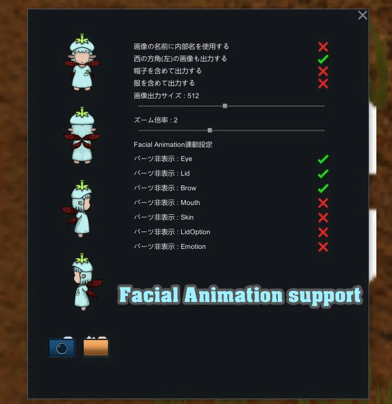 When you select a character, a "Shoot" button is added, and by pressing this button, a standing picture of the character is generated.