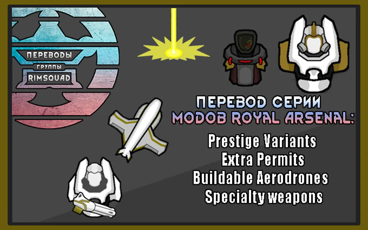 Перевод серии модов [url=https://steamcommunity.com/sharedfiles/filedetails/?id=2562074169] Royal Arsenal[/url] на русский язык.