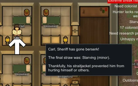 Adds straitjackets that disable mental breaks on colonists to prevent them from hurting themselves or others.