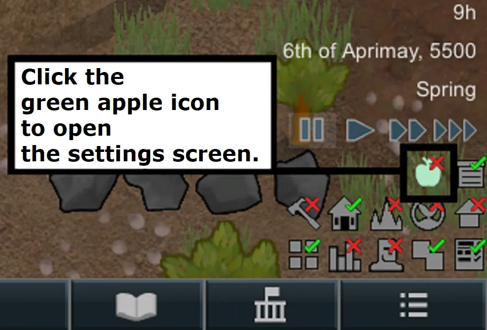 Click the green apple icon in the lower right corner of the screen to open the settings screen.