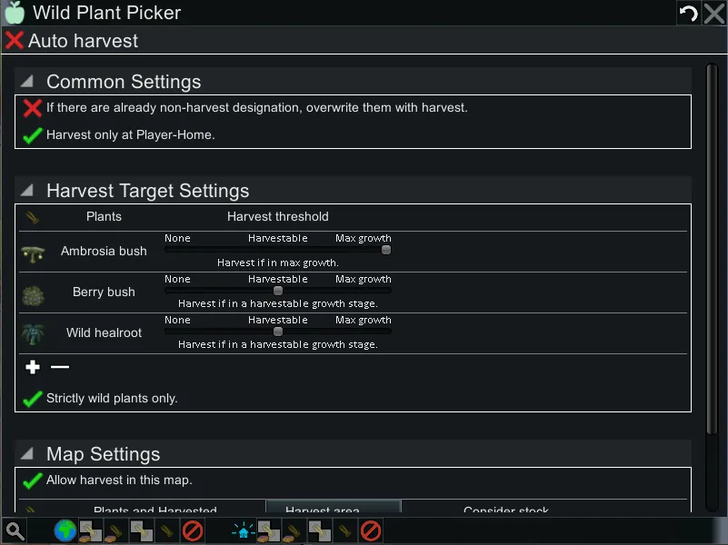 This mod provides harvest instructions to wild plants that match the conditions on your behalf.