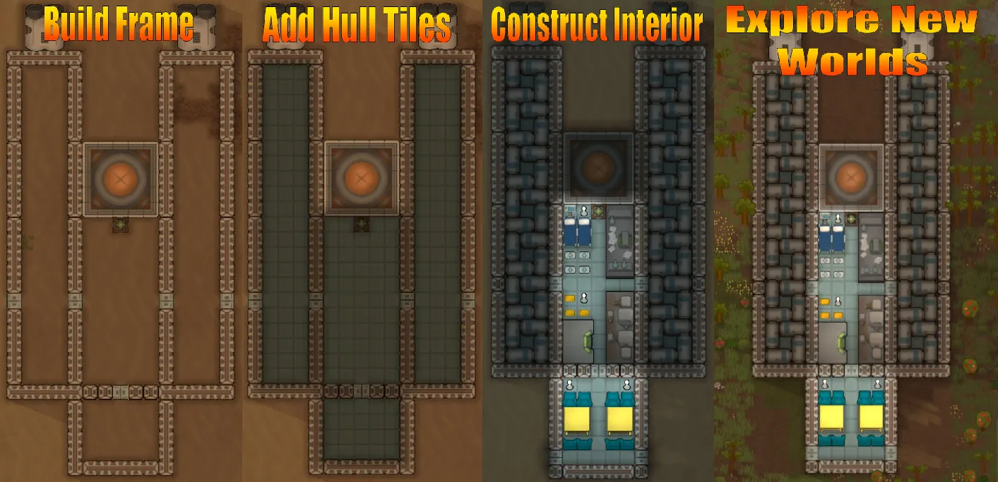 SOS also includes new ship parts which allow constructing a proper interior. Any building or item placed atop a hull tile is saved with the ship - letting the colonists bring their favorite art, their workshop, and all the supplies the next colony might need. Cryptosleep caskets can be built inside a fully sealed hull at reduced cost.