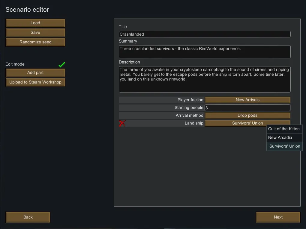 With this mod, any ship you launch is saved to a file. You can then start a new game using this ship to continue your colonists' stories on another world! Research, player faction data, and pawn relationships are all carried over.