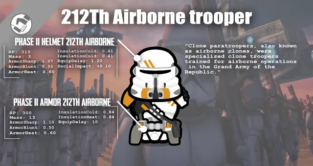 This mod adds 212th Airborne PhaseII Armor and Helmet from Starswar