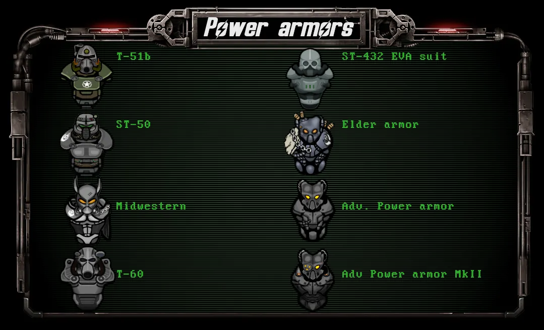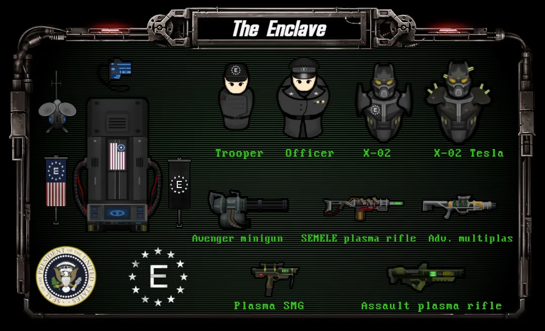Entirely based on the Fallout universe, I tried to stay lore-friendly, and preserving as much as possible the essence of the first two iterations (Fallout 1&2, Tactics in a lower extent).