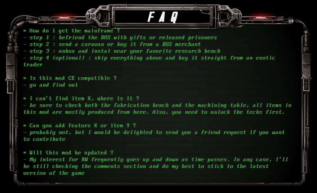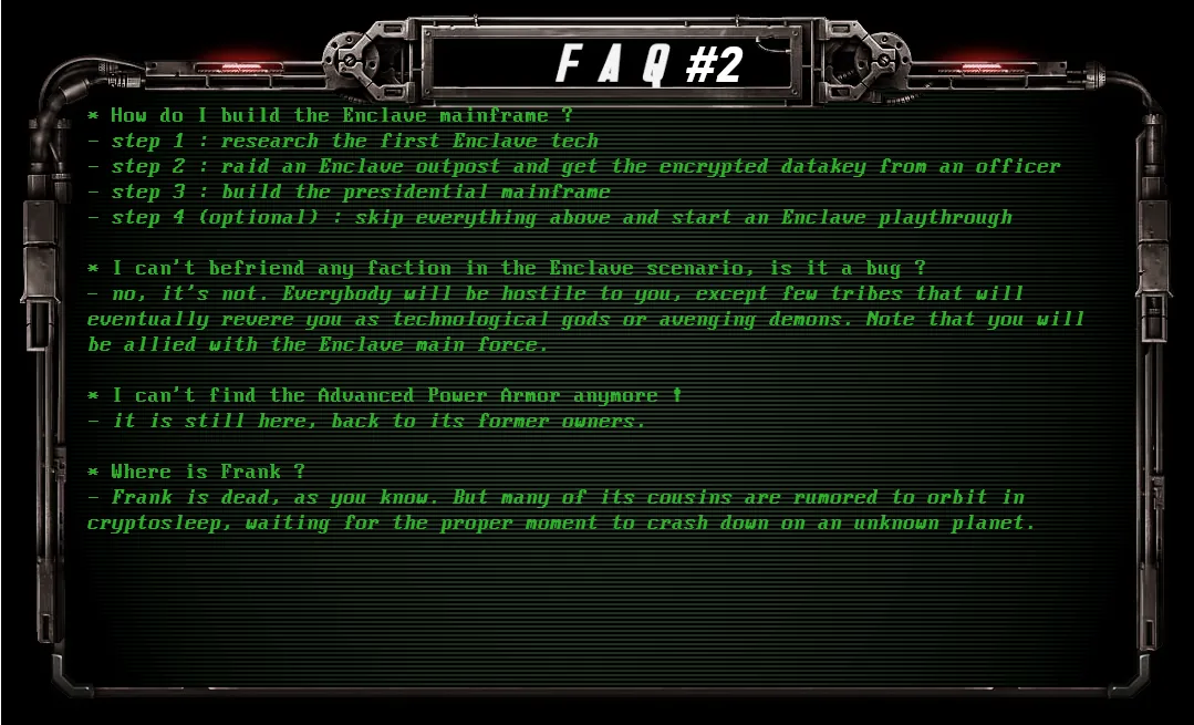 Looking for more Fallout-flavoured mods ? Pay a visit to my old friend RamRod :