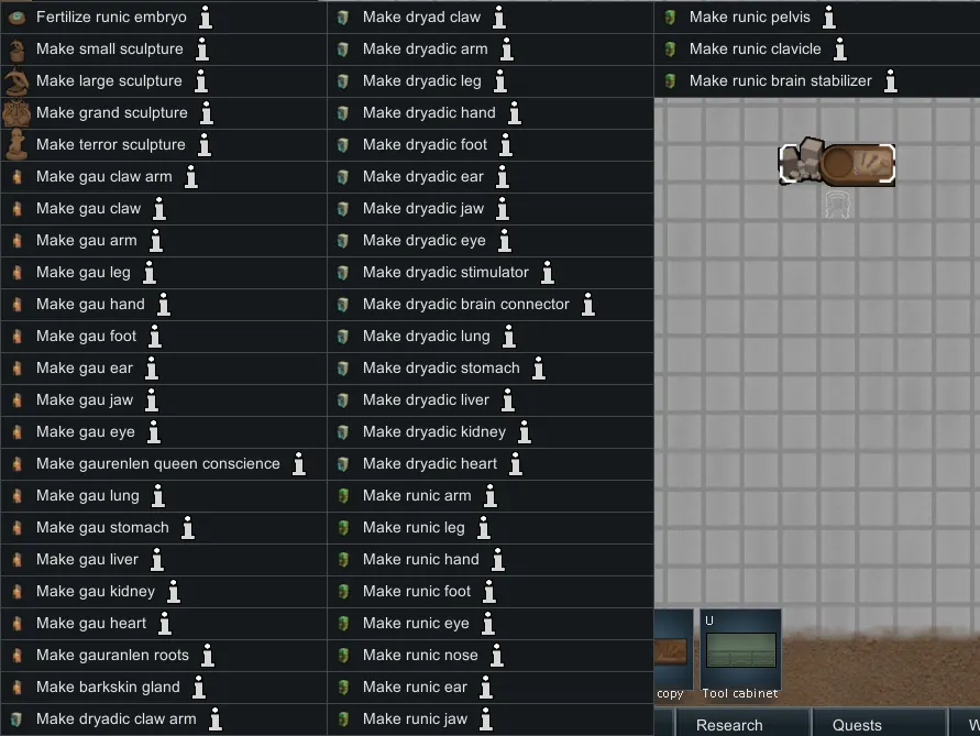 I've always loved being able to break through the roof of your pawn's potential once you unlock bionics and creating an army of super-capable pawns. I also love the idea of having pawns who are in-tune with nature and co-exist with dryads. Trying to do both, however, takes twice as long! So now it'll be a little bit easier to do with Dryadics: Dryad Bionics!
