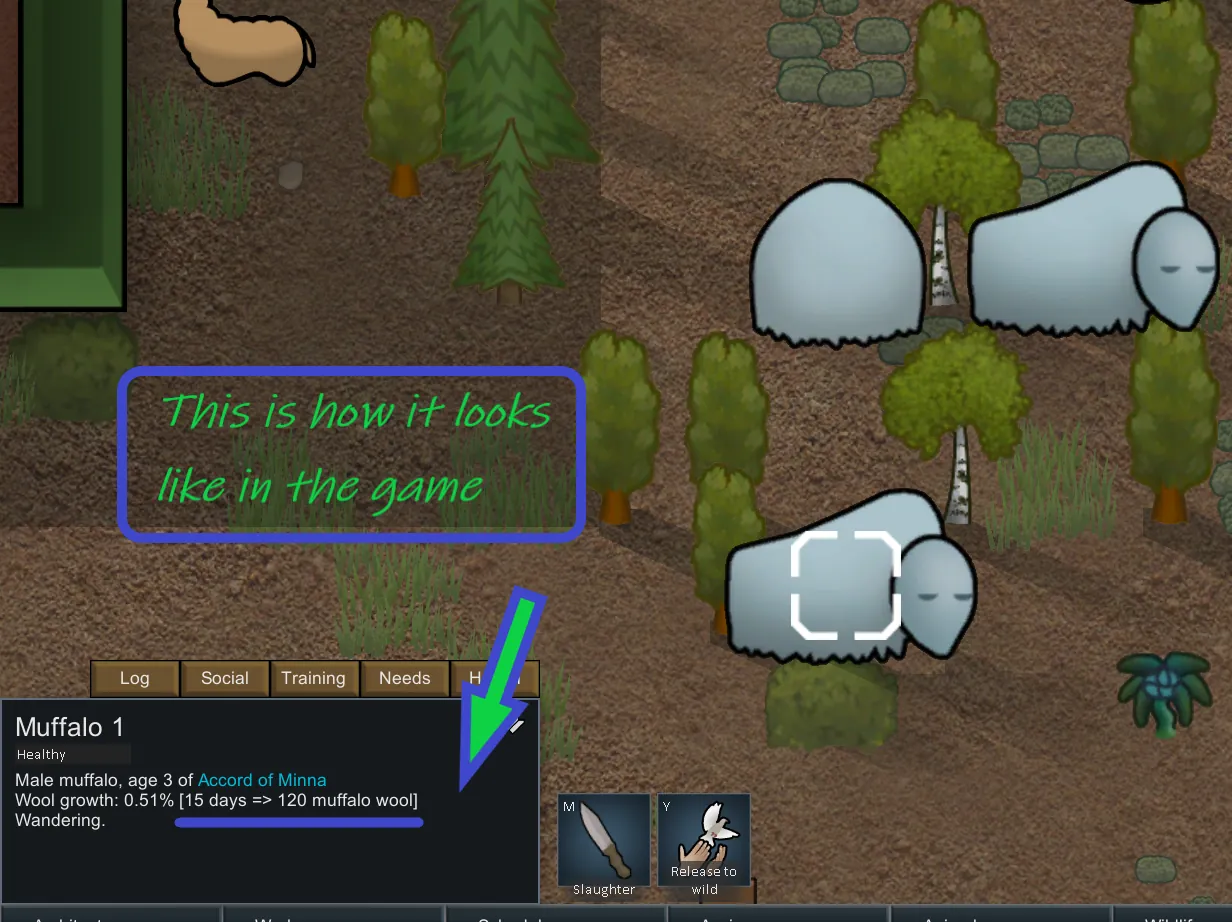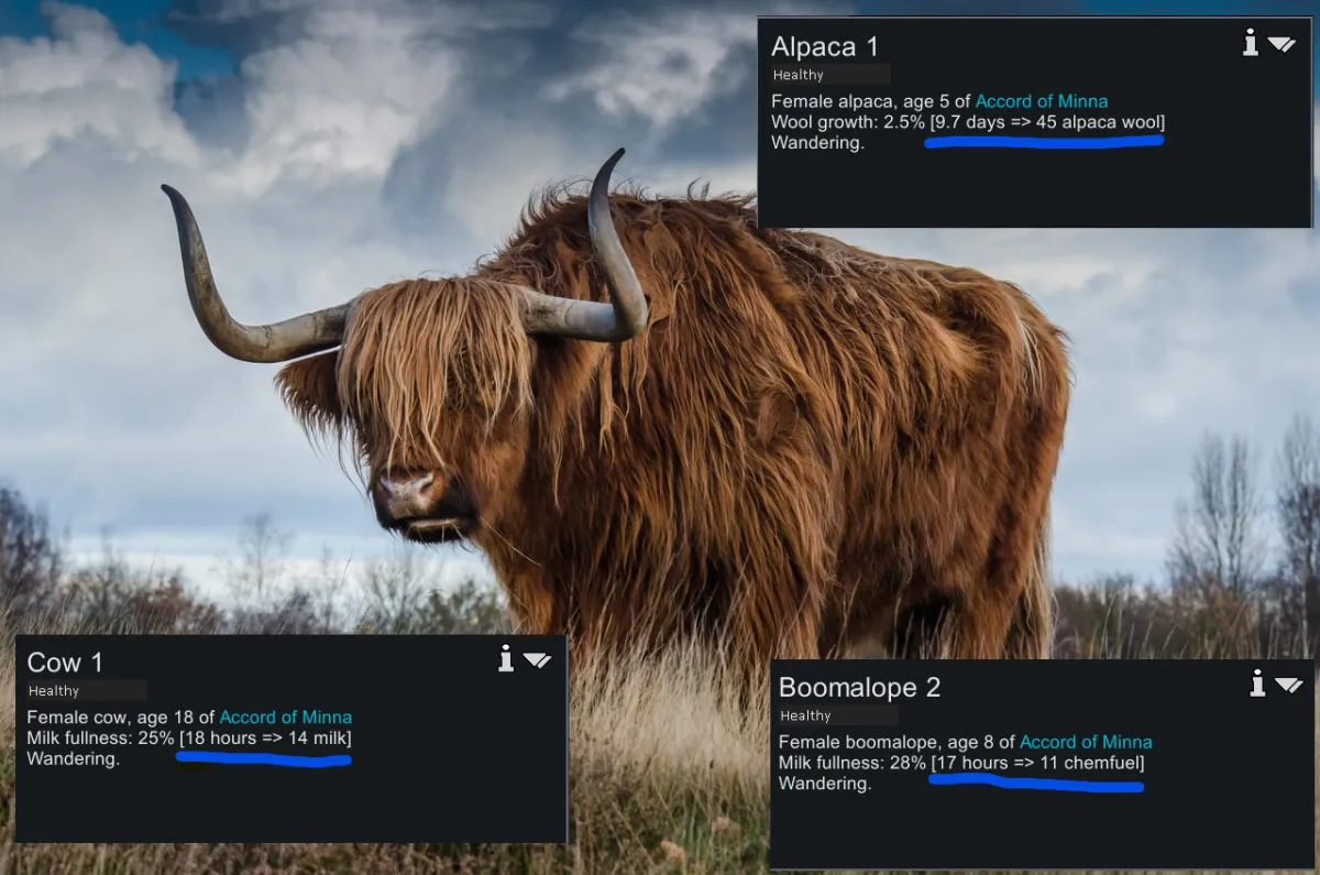 Animals with milk or wool nows displays the amount and type of resource with time left to gather.