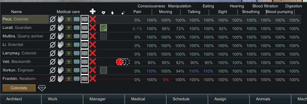 Adds a comprehensive medical overview tab, showing your colonists' health at a glance.
