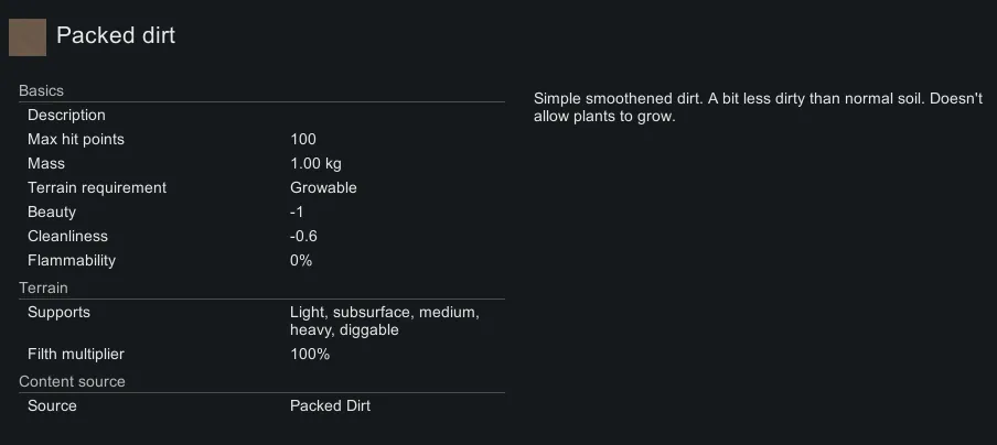 A simple mod that adds packet dirt (from [url=https://steamcommunity.com/sharedfiles/filedetails/?id=1817862464] Expanded Floors [/url]) Compatible with Tilled Soil ? Not compatible with Expanded Flors (you don't need both mods)