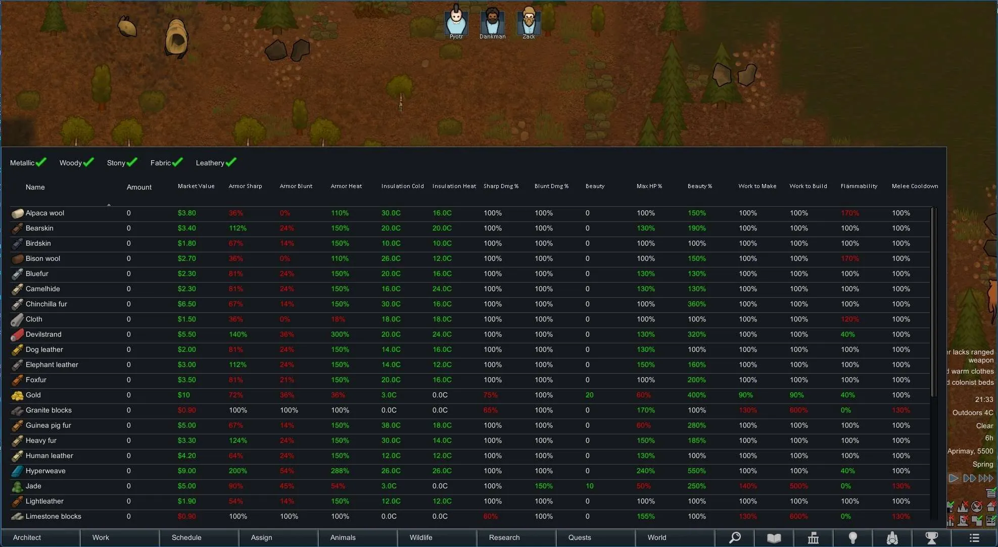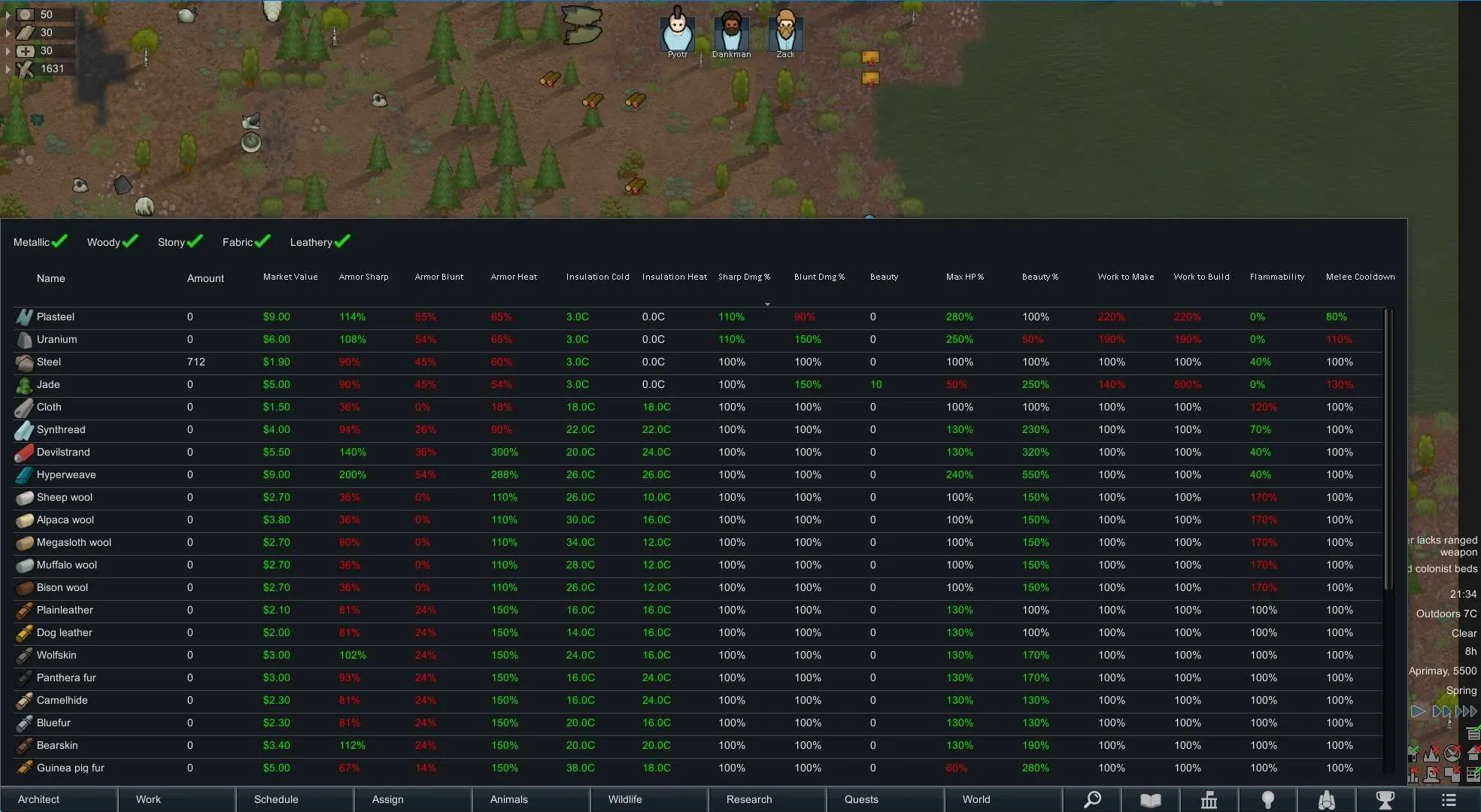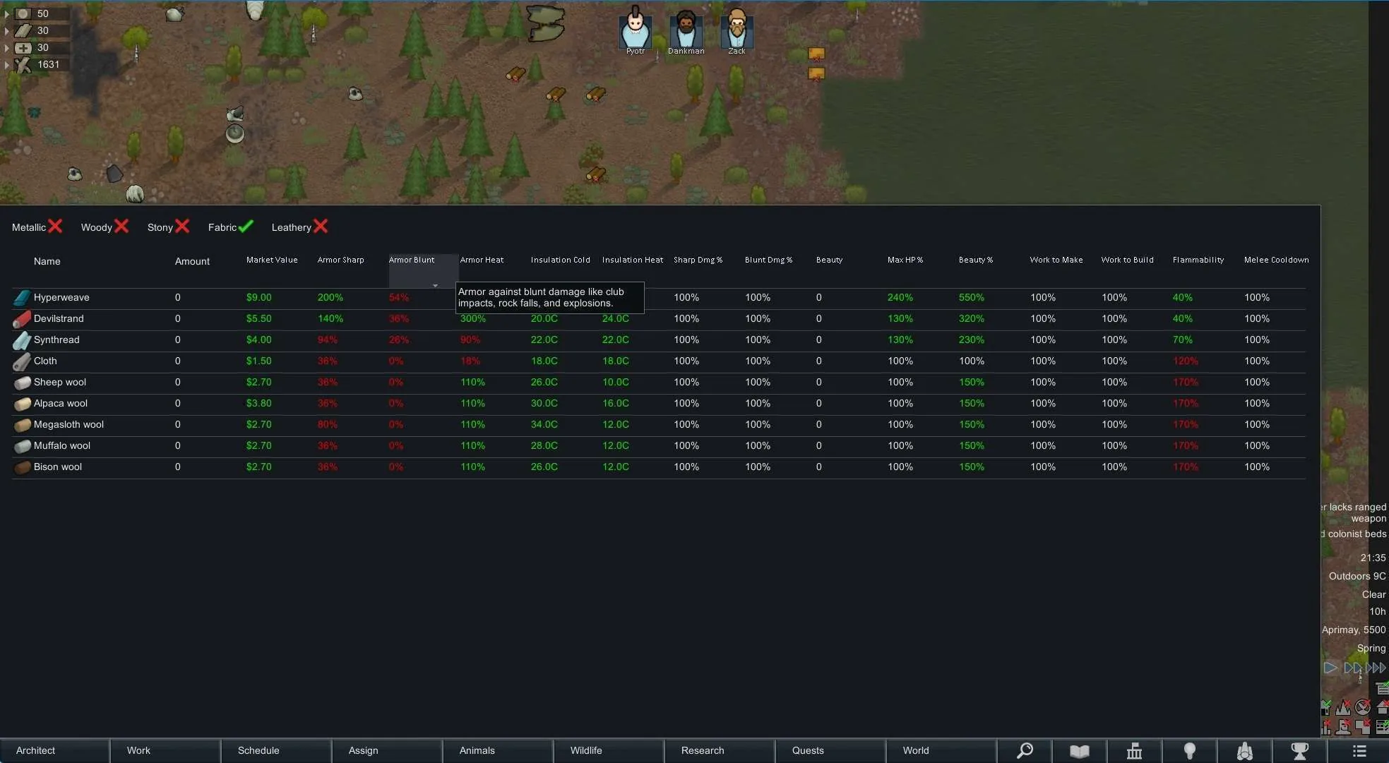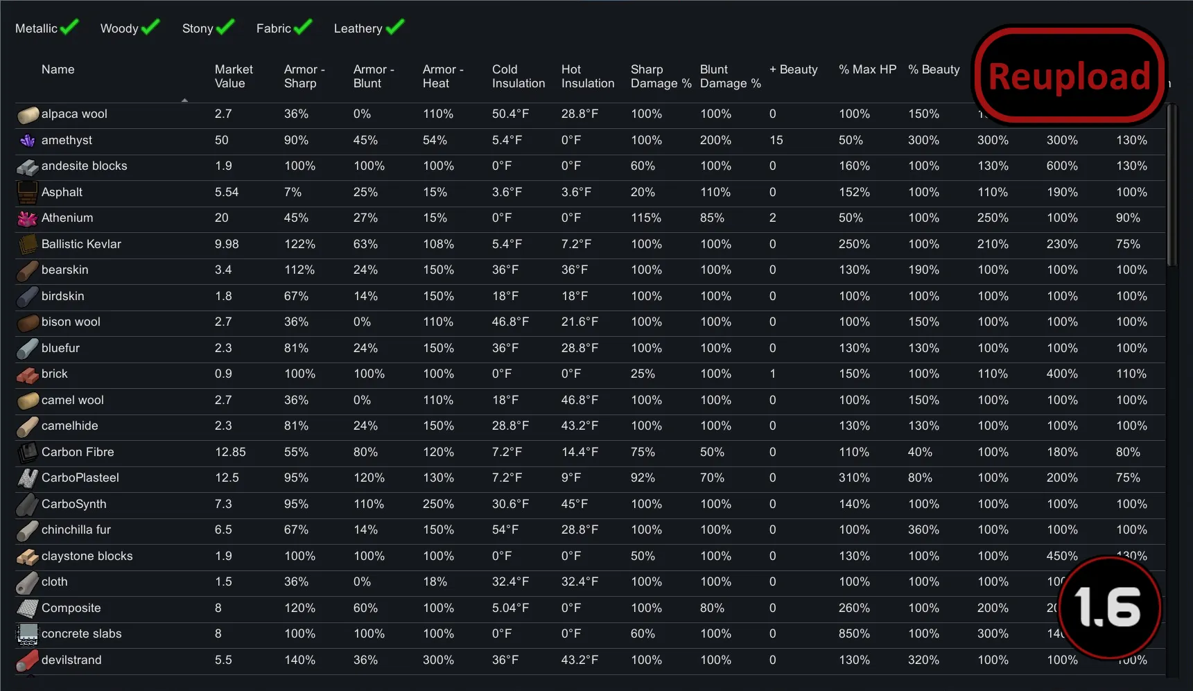 This is a tool to compare stats for stuffs, for when mods add a whole bunch of new fabrics, metals, etc. and you can't remember what's the best to make things with.