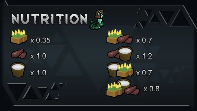 [*] Require special diet (anything with vegetables gives less nutrition - lavish meals, survival meals and pemmican will always work normally, ignoring ingredients)