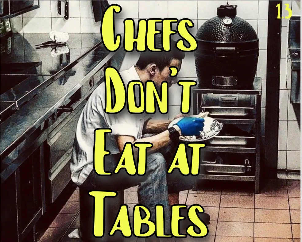 [b]Everyone knows that in real life, chefs and cooks and pretty much any employee working in a restaurant don't even know how to eat at tables because they never had time to learn how that even works. Since they lack the knowledge of such activities, they never feel bad about eating without a table. They simply aren't even aware this is an actual thing. Some people might have learned about tables in their childhood but after spending enough time in a kitchen the memories fade and the concept becomes a dreamlike notion in the dark recesses of their imaginations.[/b]