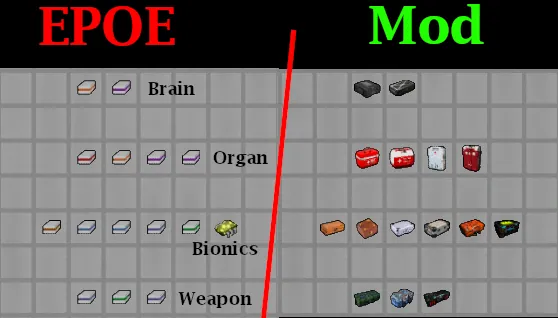 EPOE adds an excellent selection of Prosthetics and Biological replacements to fix up your pawns, but sometimes its hard to tell what tier you're currently storing in your stockpile because the only teller is the small colored strip.