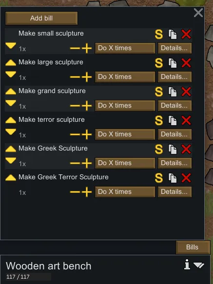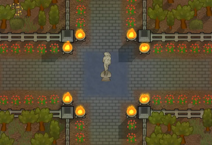 Note: There seems to be some texture clipping when a statue intersects with the top of a wall texture. As far as I know, this is a base Rimworld issue that also happens with relic shrines and other 'tall' objects. No fix for that yet.