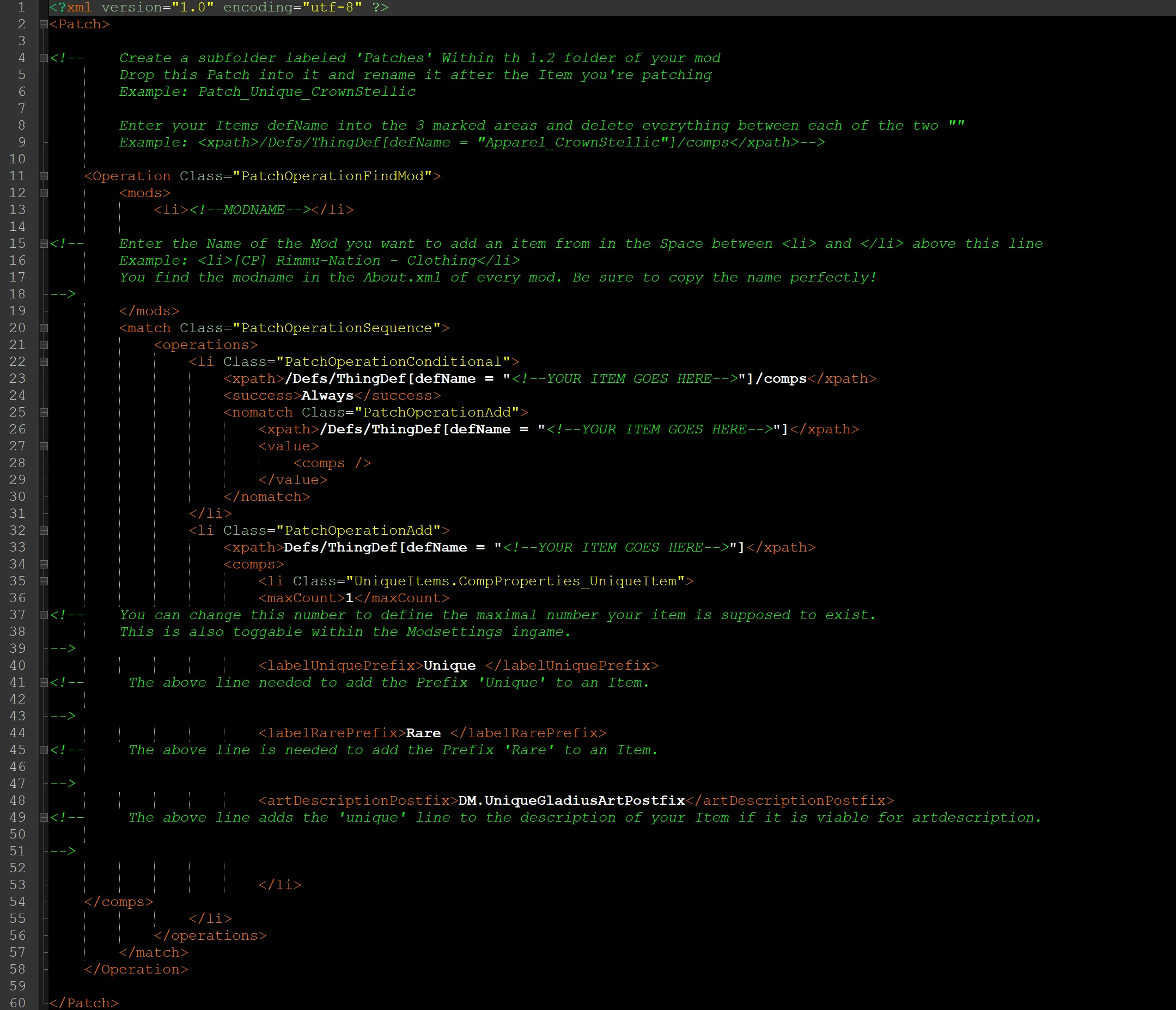 Prefix: “Unique” if the slider is set so that only one instance of the Item exists in the game. (Default)