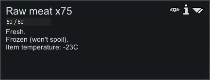 Changes temperature behaviour so that rottable items will slowly adjust to ambient temperature. Food will take some time to cool down and will stay frozen for some time, without a cooler running. The speed of heat exchange can be modified.