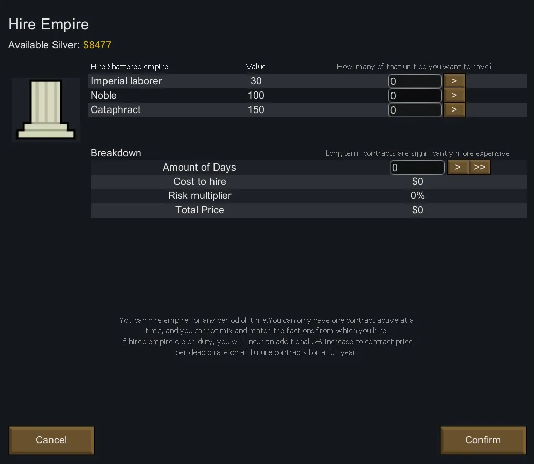 Requires Vanilla Expanded Framework as it uses their hiring code. Also obviously requires Royalty DLC.
