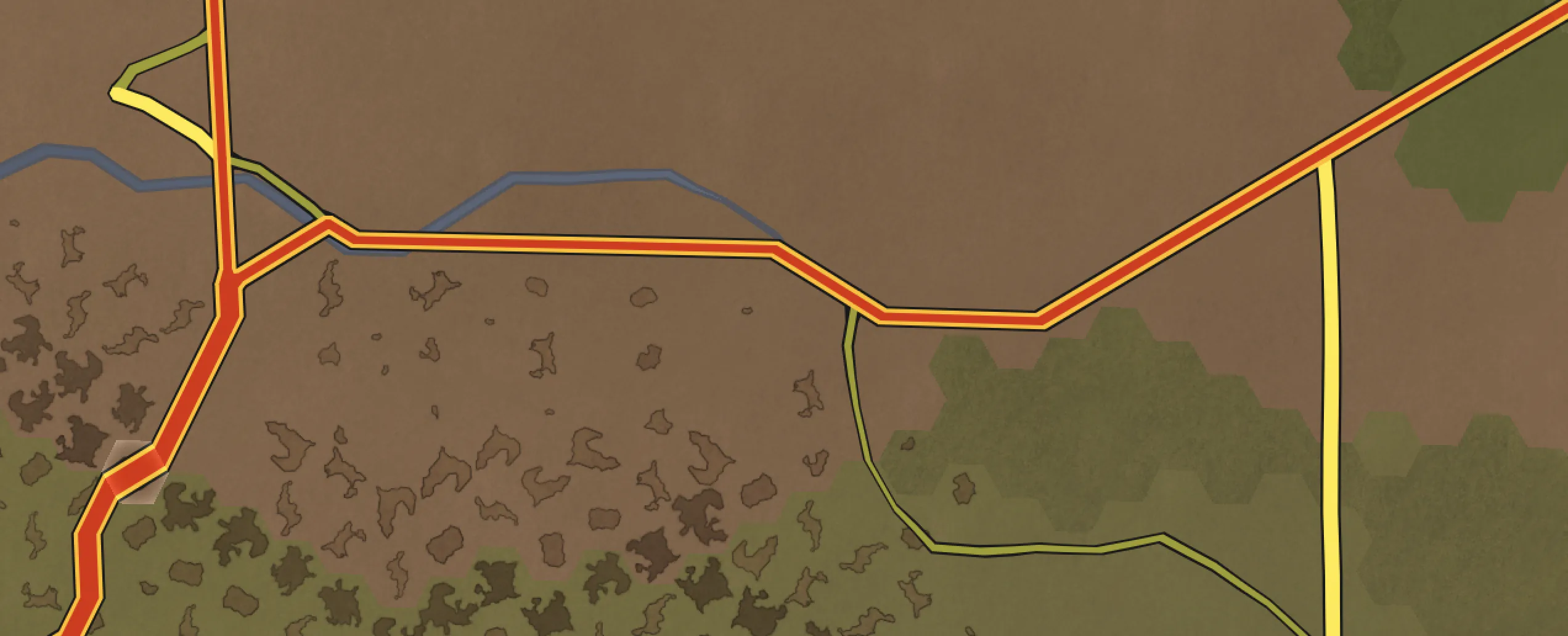 Easily identify the road hierarchy with thicker, brighter colors indicating more advanced roads.