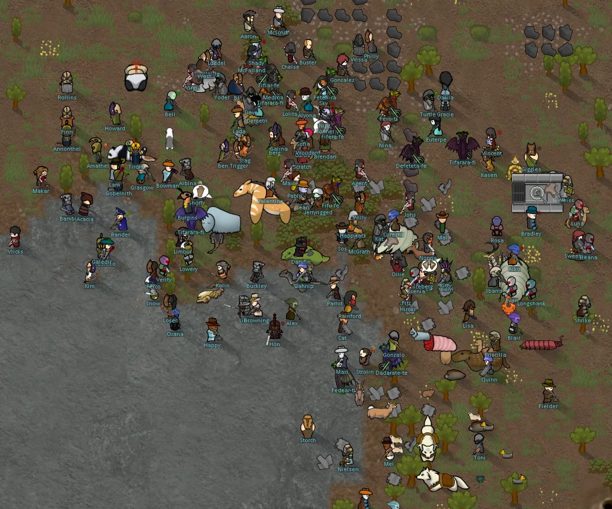 Hobbits, Dwarves, and Elves from Lord of the Rim? Check. Elder Things? Check. Asari from RimEffect? Got them. Federation soldiers and their creations? GlitterTech commandos? Tanks? Dinosaurs? Mechanoids? Genetic Rim monstrosities? Eldritch horrors? Some race mod you just created? Yep, all of them.