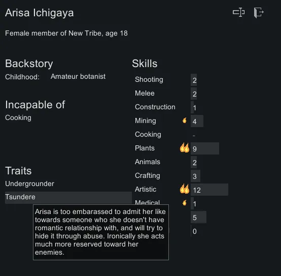 [*] -8 Mood debuff if sum of all skills is lower than that of any colonist.