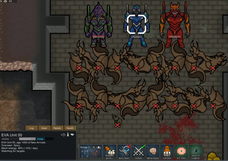 Neon Genesis Evangelion turned 30 this year. To celebrate, I put Unit 00, 01, and 02 in RimWorld. You're welcome.