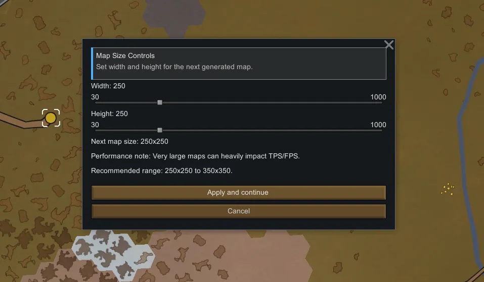 [*] [b]Settle Popup Selection:[/b] Choose your map size directly before settlement generation.