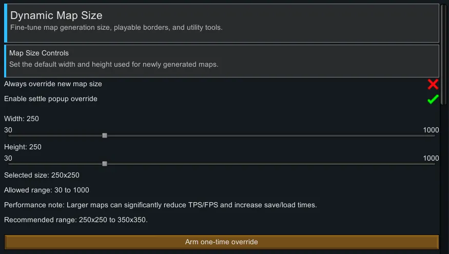 [*] [b]Always Override Mode:[/b] Automatically applies your selected size to every new map.