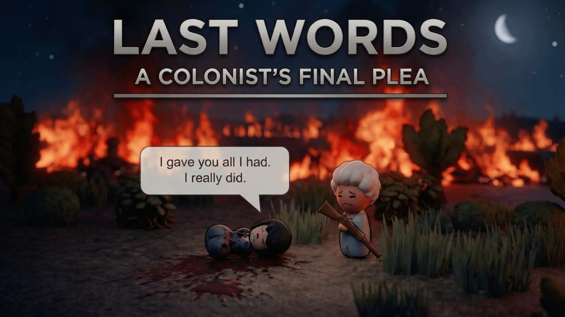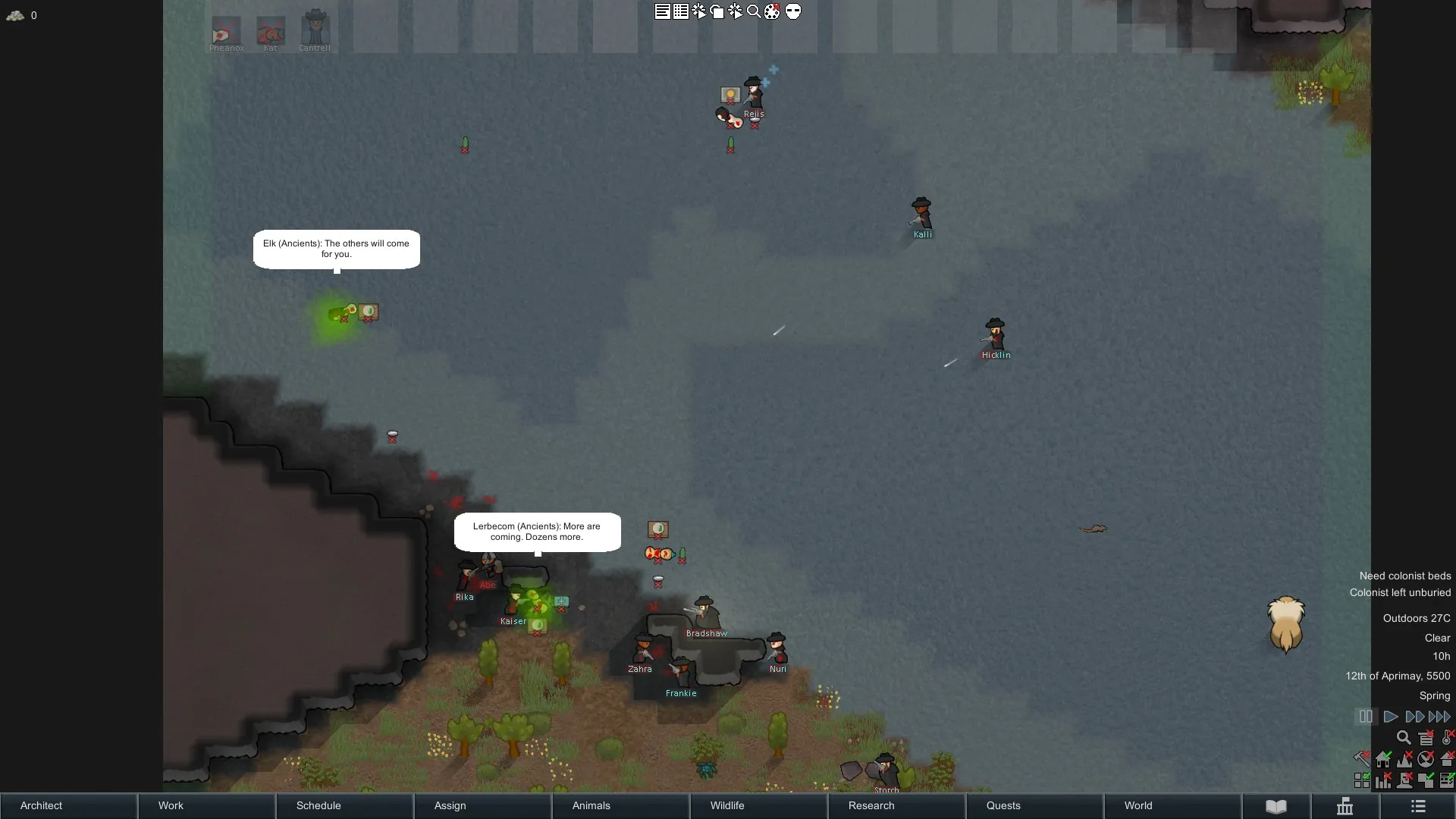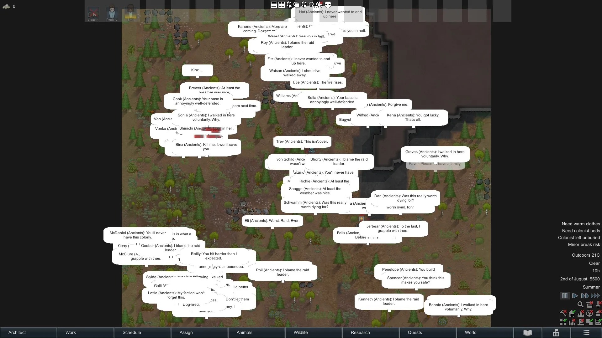 Both colonists and hostile pawns speak their last words.
