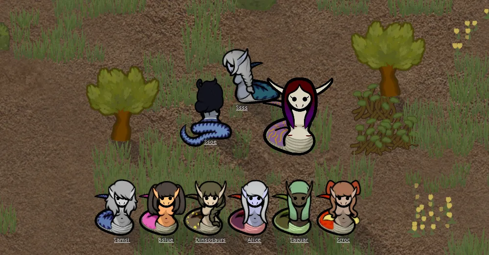 -Each species has a general color trend. Each subspecies has 1 specific snake body color, but a couple hair colors and torso skin colors.