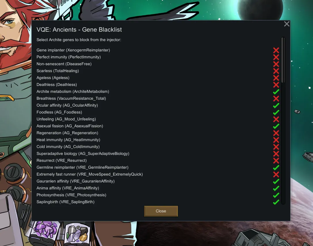 VQE: Ancients - Gene Blacklist Menu