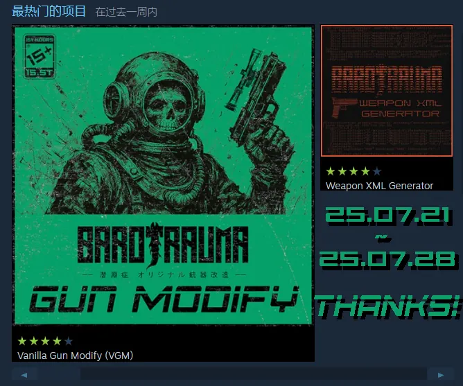 The Vanilla Gun Modify Sys (VGM) for Barotrauma aims to replicate the tactical attachment modification system found in mainstream FPS games like PUBG, Call of Duty, Metro, and S.T.A.L.K.E.R., providing a familiar, convenient, and elegant way to fine-tune your ship's weapons: from a submachine gun with a suppressor and laser sight to a revolver "rifle" with an extended barrel, sniper scope, and pistol grip.