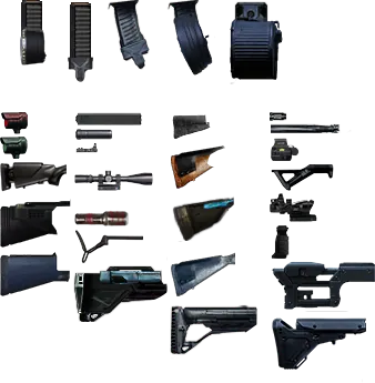 This mod adds a workbench, 10 weapons with multiple slots, and 15 different firearm accessories. All attachments work by being directly inserted into the weapon. The attachment effect values are based on the original game's values, with some slight imbalances but are generally suitable for the vanilla game environment.