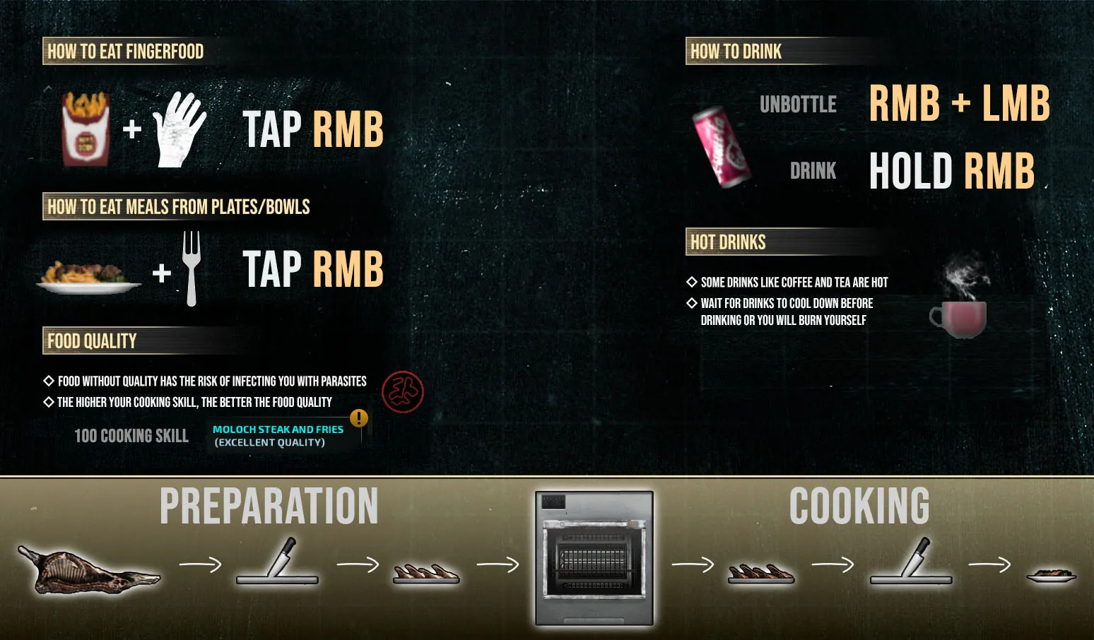 You can buy meals in outposts. Check out the cafeterias, but remember that the best food is home-made! - Optional Hunger & Thirst: