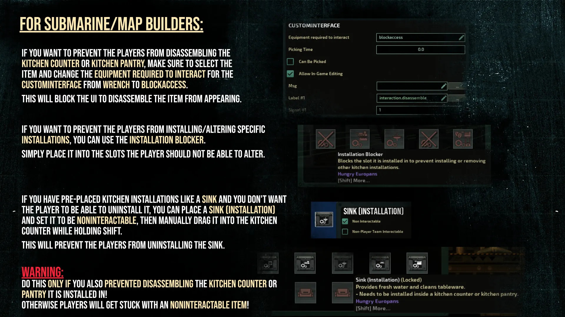 Feeling overwhelmed by all the new content? There is a test kitchen you can load in the submarine editor. You will be free to experiment and cook at your own pace to get familiar with Europan cuisine.