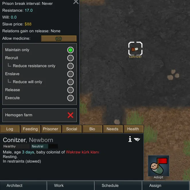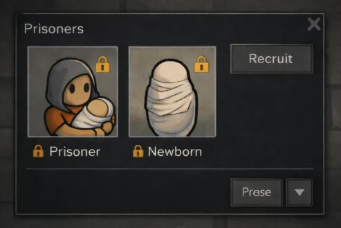 If a prisoner or slave mother gives birth, the newborn automatically inherits the mother’s status — no instant freedom, no automatic colonist conversion. The same fate continues from the very first moment 🔒