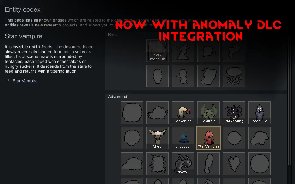 *Add Lovecraftian monsters to your RimWorld experience!* There is a lingering fear that strokes the hairs on the back of the necks of your colonists. Something terrible is coming, and there is little time to prepare. Cosmic horrors are already upon us.