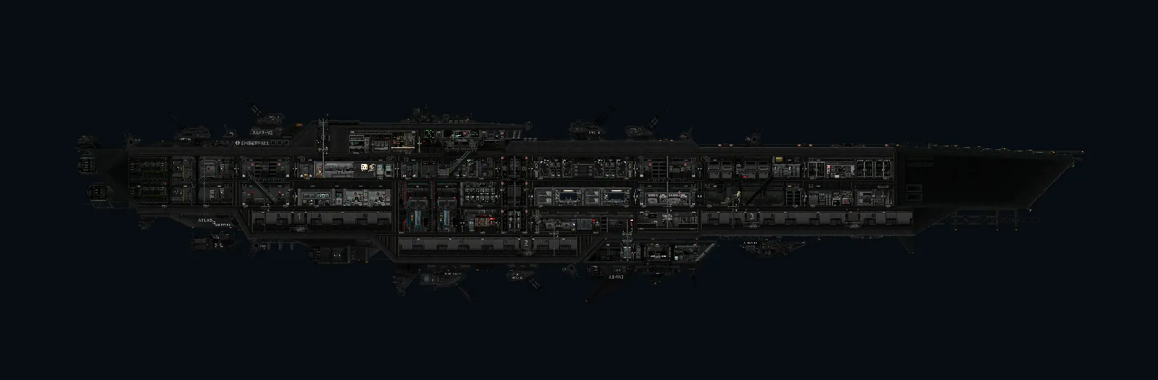 Come with on-board maintenance drone, combat drone and exploring shuttle. Have built in A.A.D.S. (Atlas Automatic Defense System) and sheer force to break through the Tide with reinforce front armor.