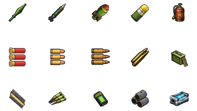 - Ammunition and magazine system with per-weapon ammo types and icons.